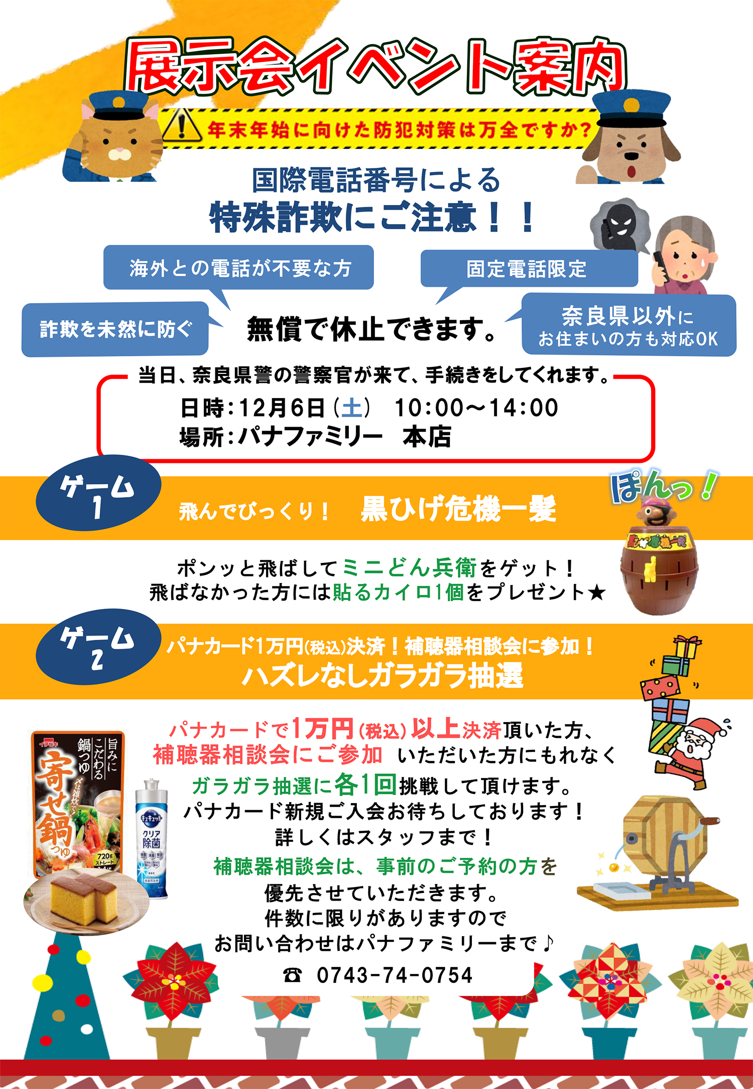 パナカード1万円(税込)決済、補聴器相談会にご参加いただいた方にもれなくガラガラ抽選に各1回ご挑戦いただけます。