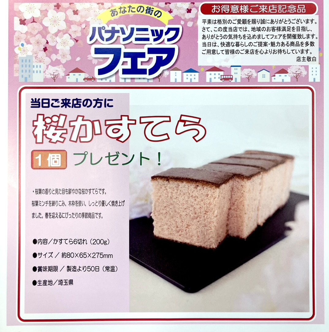 フェア当日ご来店の方に、桜かすてら1個プレゼント🌸
